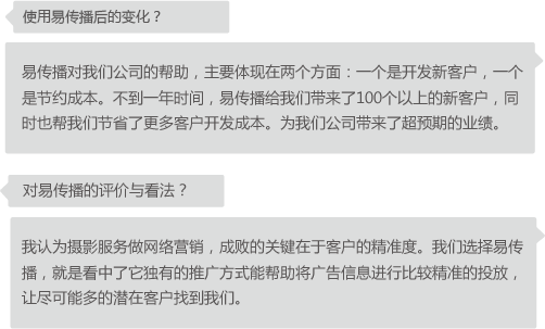 为客户节约大量传播成本,其投资不及传统媒体(电视、报刊)宣传费用的1%-10%,但因其目标客户精准的特点,回报率远高于传统媒体。